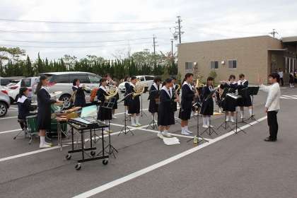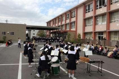 オータムコンサート(10月27日) 公開日 2015/10/27 更新日 2015/10/27 学校の様子 吹奏楽部がさくらんぼ学園花壇前で、オータムコンサートを行いました。 昼休みの15分ほどの時間でしたが、「君をのせて」「やさしさに包まれたなら」などの4曲を演奏しました。 いいね(0)