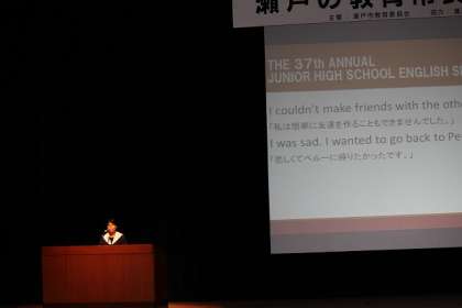 続いて、英語スピーチコンテストが行われ、非常にレベルの高い英語による演説が行われました。本校からも代表生徒の発表をしました。