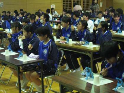 生徒たちにとっては随分先の長い話ですが、「8020(80歳になっても20本以上自分の歯を保とう)」に向けて、地道に取り組めるとよいと思いました。