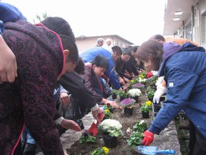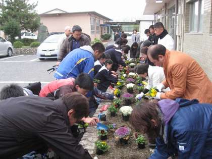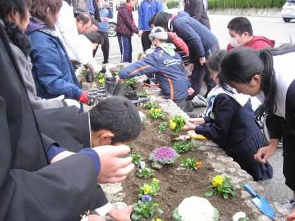ふれあい美化活動(12月4日) 公開日 2015/12/04 更新日 2015/12/04 学校の様子 さくらんぼ学園・本校の生徒、少年センターの方、学校評議員の方と共同で、来賓玄関前の花壇にパンジー・葉ボタンの苗と、チューリップの球根を植えました。季節に合わせて植えかえをしました。 いいね(0)