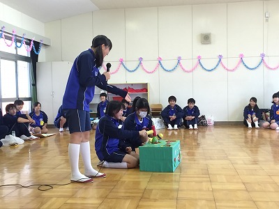 保育実習その1(12月15日) 公開日 2015/12/15 更新日 2015/12/15 学校の様子 本日、2時間目・3時間目に3年生の生徒が、家庭科の「保育領域」の学習として、保育実習に出かけました。 3学級ありますので、1組は八幡保育園、2組は原山保育園、3組は萩山保育園で行いました。 お互いにあいさつを交わした後、ふれあい遊びをしました。その後、家庭科の時間に作成してきた「おもちゃ」の遊び方の説明をしました。 いいね(0)