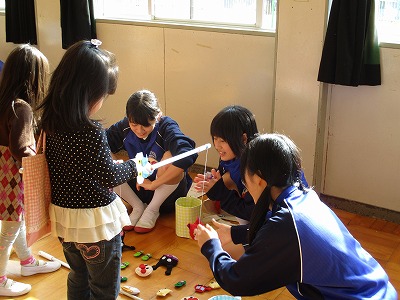 園児のみなさんに楽しんでもらえるように、おもちゃを手作りしました。