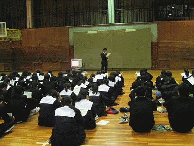 学年集会(12月21日) 公開日 2015/12/21 更新日 2015/12/21 学校の様子 2学期のまとめと、冬休みの過ごし方などについて、学年集会を行いました。 上から、1年2年3年の順です。1年生は4階の総合学習室、2年生は柔剣道場、3年生は3年生は体育館でした。各学年とも2枚ずつ切り替わります。 いいね(0)