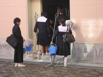 先週の金曜日と昨日大掃除を行い、ワックスがけをしました。写真ではわかりにくいですが、床にツヤがでてかなりきれいになりました。美化委員が使用したモップを洗って干し、倉庫にしまっていました。
