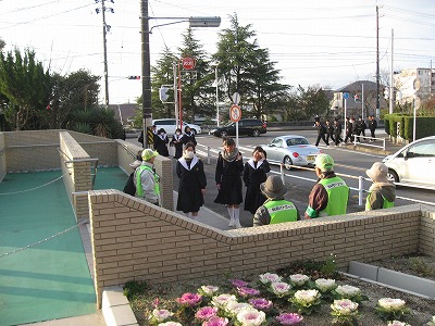 少年センターの方々に、始業式・終業式などの式日の朝、校門前にたって、あいさつ運動をしていただいています。今日も3つの校門の前で、多数の方に行っていただきました。いつもありがとうございます。