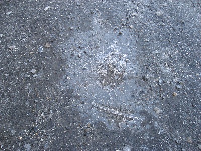 今朝は気温が低かったことや昨日の雨の影響もあってか、水たまりがあるところに氷はっていました。車のフロントガラスについていた水滴も氷になっていました。