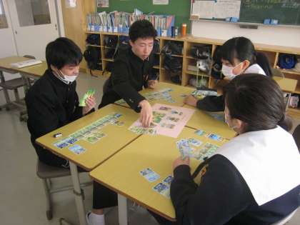 3年生理科で学習した「食物連鎖」をカードゲームで体験してみました。食べる・食べられるという関係が頭では分かっていても体験してみると、意外なピラミッドが・・・。さすがカードゲーム世代、盛り上がりました。