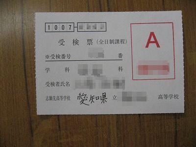 3年生の公立高校一般入試を受検する生徒が給食を食べた後に、受験校に願書を提出に出かけました。高校で受け付けをしてもらい、受検票を配付してもらいます。写真の受検票はAグループの受検票です。赤で大きく「A」と記されています。