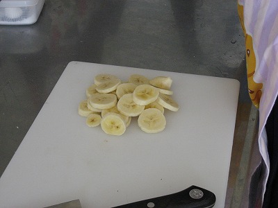 グループによって大きさに違いがあります。焼き上がるととても良い香りがしてきました。泡立てた生クリームと、カットしたバナナを添えて食べます。