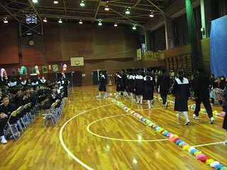 本日の「卒業生を送る会」は和やかな場面と厳かな場面にわかれ、とてもすばらしい会であったと思います。多くの写真がありますので、数回に分けて紹介していきます。
