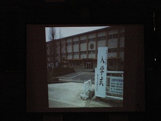 卒業生を送る会その6 公開日 2016/03/01 更新日 2016/03/01 学校の様子 続いて、思い出のビデオです。1年生の入学式から、2年生の野外活動、3年生の体育祭、文化祭をスライドをみながら振り返りました。 いいね(0)