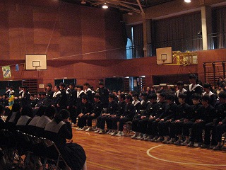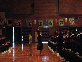 卒業生を送る会その7 公開日 2016/03/01 更新日 2016/03/01 学校の様子 引き続いて、部活動の後輩から、3年生の先輩へのメッセージを送りました。各部ごとに行いました。メッセージのBGMは吹奏楽部員による演奏です。一番下の写真が暗くてわかりにくいですが、演奏をしている時のものです。 いいね(0)