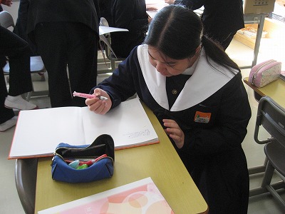卒業アルバムを見た後、後ろのサインのページに、学級や学年でお互いにメッセージを書き合いました。