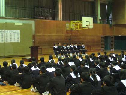 平成28年度前期役員選挙その1(3月16日) 公開日 2016/03/16 更新日 2016/03/16 学校の様子 本日、6限に延期になっていた生徒会役員選挙を行いました。当初は8日の予定でしたが、立候補者の中にもインフルエンザの生徒もいて、しかも学校自体が休校せざるをえない状況になってしまったために、今日になりました。 立会演説会は、選挙管理委員が運営しました。 いいね(0)