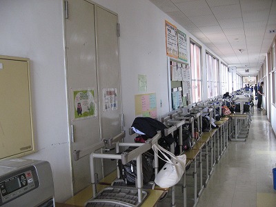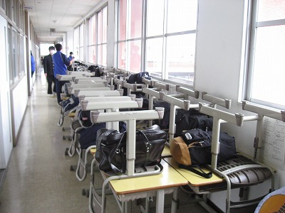 教室の床を磨くために机を廊下に出しました。