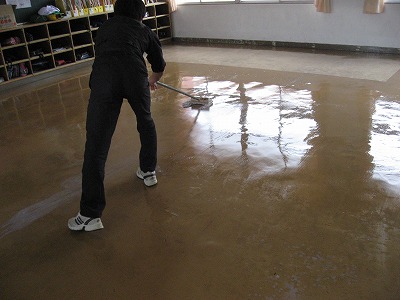 最後に美化委員を中心にワックスをかけました。 トイレの床もワックスがけをしました。