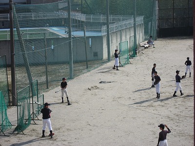 3連休中、いくつかの部活動が練習をしています。今日、運動場では、ラグビー部と野球部が練習をしていました。体育館では卓球部が明日の試合に備えての練習でした。卒業生も練習相手をしてくれていました。
