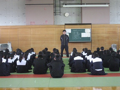 1年生学年集会(3月23日) 公開日 2016/03/23 更新日 2016/03/23 学校の様子 本日6時間目にそれぞれの学年最後の学年集会を行いました。1年生は柔剣道場で、1年の担当の教員から最後の話を聞きました。 いいね(0)