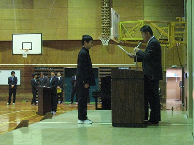表彰その2(3月24日) 公開日 2016/03/24 更新日 2016/03/24 学校の様子 2つめの表彰は皆勤賞です。1年間、インフルエンザ等の出席停止を除き、学校を欠席しなかった生徒の表彰です。1年生は45名が表彰されました。写真は1年生の生徒の表彰の様子です。 いいね(0)