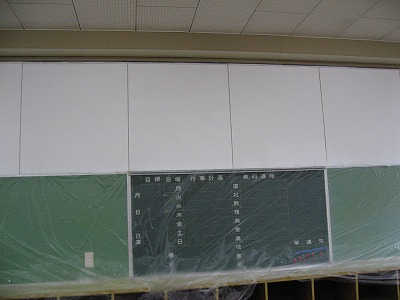 新年度が始まる前に、出来る範囲で教室や廊下の壁を白いペンキで塗り直しています。