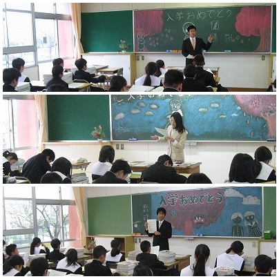 始業式後、1年生と3年生はそれぞれの教室で、初めての学級活動を行いました。2年生は体育館に残り、舞台や椅子の片付けを行い、その後学級活動にうつりました。今日は学年通信を始めたくさんの配布物がありました。写真は上から1年生、3年生、2年生の順になっています。