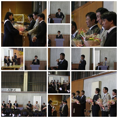 あいさつの後、花束を贈呈し、校歌を歌いました。