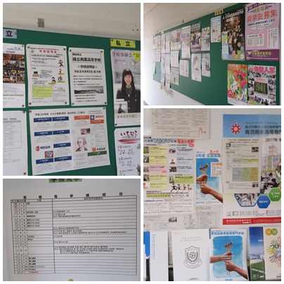上級学校見学会について 公開日 2016/06/22 更新日 2016/06/22 学校の様子 3年生が通る3階の渡り廊下の掲示板に上級学校(高等学校や各種学校など)の見学会のポスターがはってあります。 多くの上級学校が夏休み中に見学会を計画しています。申し込みは7月上旬が締め切りになっています。多くの学校を実際に足を運び、見学して欲しいと思います。 いいね(0)