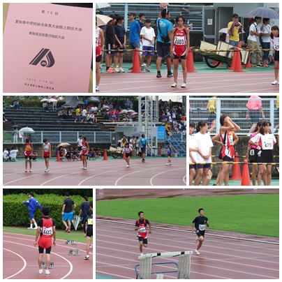通常の部活動とは別で、瀬戸尾張旭の陸上競技大会に出場した選手の中で、良い成績を残しており希望した生徒が16日中総体愛日陸上競技大会(知多市陸上競技場)に出場しました。1年生の女子生徒(800m)と3年生の男子生徒(400m)の2名が参加しました。ほとんど陸上の練習ができない中でのレースであったため1年生の女子は、予選レースで惜しくも敗退してしまいました。3年生男子生徒は、自己ベストのタイムを出すことができ、予選を突破し、決勝でも7位となりましたが、県大会への出場はかないませんでした。遠方まで、お疲れ様でした。また、応援ありがとうございました。