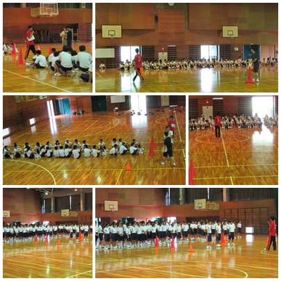 1年生の学年練習を今日は運動場が使用できないため、体育館で行いました。