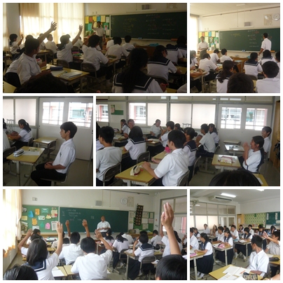 3年生の授業(9月16日) 公開日 2016/09/16 更新日 2016/09/16 学校の様子 5時間目、3年1組は公民、2組は国語、3組は数学の授業でした。公民の授業では、身近なきまりから法律についての学習、国語の授業では小スピーチとして光陵中学校を説明する学習、数学の授業では二次方程式の利用として直方体の体積をから辺の長さを求める学習に取り組んでいました。体育祭翌日で疲れもある中、先生たちの笑いある授業に、3年生はしっかり学習に励んでいました。 いいね(0)
