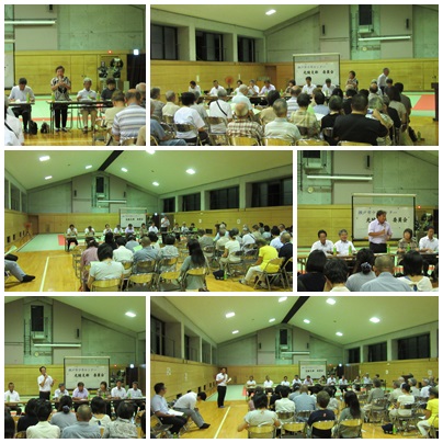 瀬戸市少年センターの所長様、瀬戸警察生活安全課の方を含め、総勢60名の方にお集まりいただきました。団地内にある5つの学校の様子、自動車や自転車を盗難から守る手立てなどの防犯のお話などがありました。