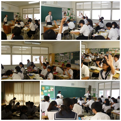 3年生ALTの先生による授業その2(9月29日) 公開日 2016/09/29 更新日 2016/09/29 学校の様子 3年生の昨日英語の授業がなかった残り2クラスで、修学旅行をテーマに自分たちで英作文をつくる授業を行いました。 3年生は、英語での表現の仕方について「How do you say 〜 in English?」や「How do you spell 〜?」と英語でALTの先生に質問しながら、東京での修学旅行について英語でまとめていました。 いいね(0)