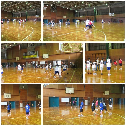 バスケット部はテスト期間中ですが、来週の大会に備え、午前のみ練習しています。男子は品野中と練習試合をしています。