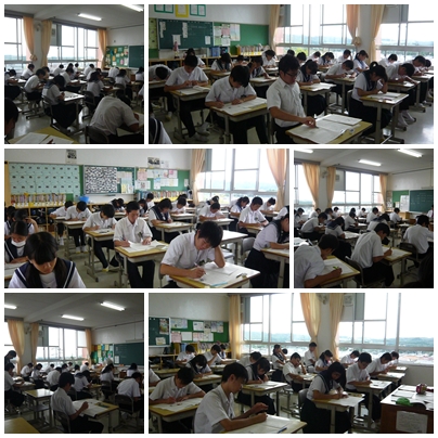 中間テスト2日目です。今日でテストが終わります。2日目の1時間目は、1年生が国語、2年生は数学、3年生は理科のテストに取り組んでいます。持てる力を精一杯発揮してください。がんばれ光陵中生!!