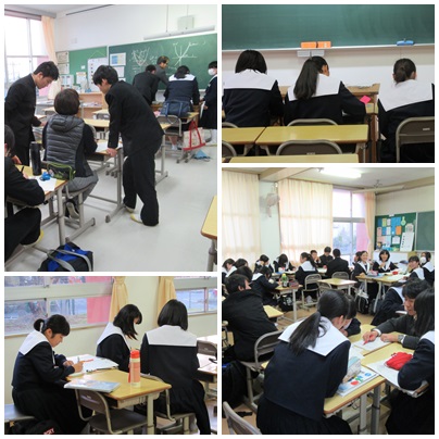 授業後、期末テストに向けて学習会をしています。質問なども積極的に行っていました。