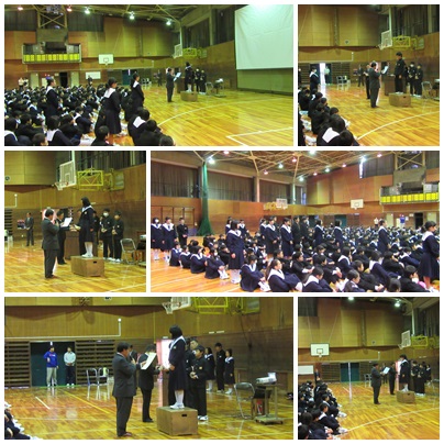 本日、全校集会を体育館で行いました。