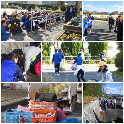 本校1年生と八幡小、原山小、萩山小及びさくらんぼ学園の児童・生徒による合同ユートピアプランを開催しました。団地内を各グループに分かれて、地域の方への感謝の気持ちを込めて地域清掃を行いました。瀬戸市環境課の方のご協力もいただき、スムーズなゴミ分別と回収を行うことができました。地域の方も一緒に活動していただきました。誠にありがとうございました。