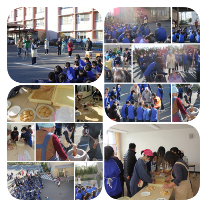 2年生が実施した餅つきユートピア活動では、多くの方にご協力していただきました。地域の方や少年センター光陵支部の方、学校評議員の皆様が、前日の準備から当日の餅つきのご指導までしていただきました。