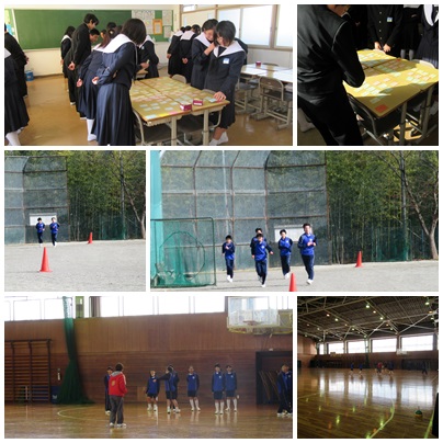 今日の授業から(1月16日) 公開日 2017/01/16 更新日 2017/01/16 学校の様子 2年生の国語の授業で総合基礎の時間に百人一首に取り組んでいます。全員が立って札を見つめています。 2年生の体育の授業では、男子が持久走、女子は体育館でバスケットボールに取り組んでいました。 いいね(0)