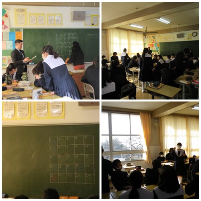 2年生ALTとの授業(1月20日) 公開日 2017/01/20 更新日 2017/01/20 学校の様子 2年生の英語の授業では、ALTの先生が英語で質問した問題に対して、英語で答えるクイズをしながら学習しました。グループ対抗で、質問に対しての答えを英語で話すのはもちろんですが、正解したグループがテレビ番組「アタック25」のように陣地をとりあうことも競い合いました。そのため正解して場所をとる権利を得るとかなり盛り上がりました。 いいね(0)