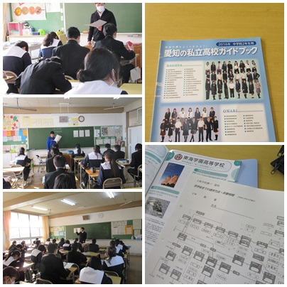 2年生は6時間目に進路学習に取り組みました。公立高校、私立高校、専修学校などの上級学校について、分担して調べていきます。
