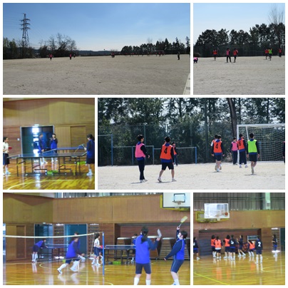 3年生最後の教科の授業(2月27日) 公開日 2017/02/27 更新日 2017/02/27 学校の様子 今日の4限が、3年生にとって中学校最後の教科授業になりました。最後の授業は体育でした。男子は運動場でサッカー、女子は体育館で、バスケット,バドミントン,卓球の中から自分で選んだ種目を行いました。明日からは3年生は学年で独自での時間割になります。 いいね(0)