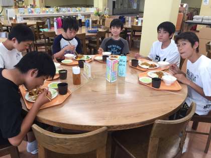 キャンプファイアーのため、今晩は早めの夕食です。