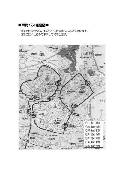 2年野外活動 帰りのバス下車場所