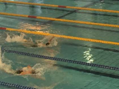 中総体瀬戸・尾張旭地区大会水泳の部が口論義運動公園温水プールで開催されました。本校からは、2年生男子が50m自由形に出場しました。この地区大会で、県標準記録を突破すると県大会出場の資格が与えられます。本校生徒は、予選1組に出場し1組2位で、残念ながら県標準記録を突破することはできませんでした。しかし、記録を突破しようとする気持ちは、泳いでいる姿からしっかり伝わってきました。よくがんばりました。お疲れ様でした。