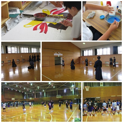 本日、剣道部、卓球部、バスケットボール部、ソフトテニス部、美術部が午前中、学校で活動していました。バスケットボール部は午後も練習です。また、ラグビー部は、写真はありませんが、午後から瀬戸北高校にでかけて、合同練習を行っています。