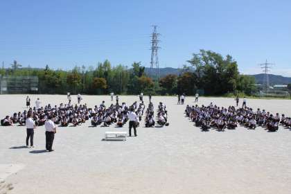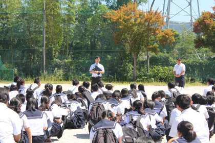学級活動後に避難訓練を行いました。今回は,東海大地震に備えた注意情報が発表された場合に,生徒を速やかに帰宅させる方法を確認する目的で訓練を実施しました。実際に注意情報が出されたときには,「担当教員が付き添って地区ごとに集団で下校する」か,「学校で待機して保護者の迎えを待つ」のどちらかの方法で生徒たちは帰宅することになります。まずは安全を第一に考えて行動することができるように,日頃から防災意識を高めていきたいと思います。