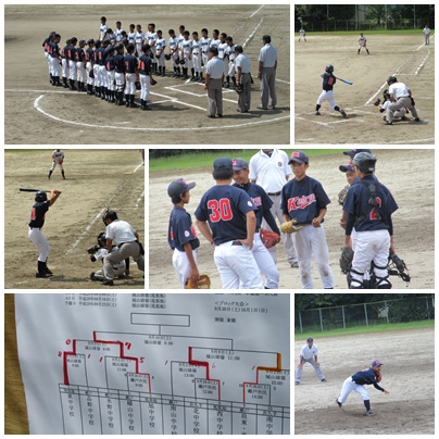 野球部(本山中・祖東中合同チーム)は、本日11時から、準決勝に臨みました。場所は尾張旭市の城山球場で、相手は尾張旭西中学校でした。