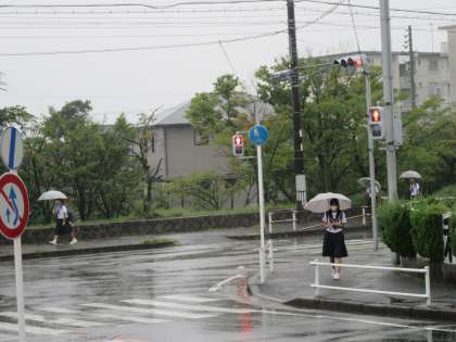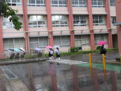 天気予報通り、雨がふりました。登校時は雨足が時折激しくなり、傘をさしていてもぬれてしまうような天候でした。