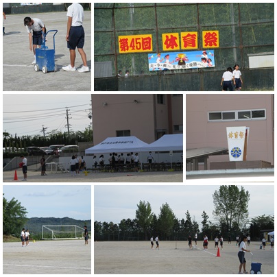 体育祭準備(9月13日) 公開日 2017/09/13 更新日 2017/09/13 学校の様子 明日の体育祭に向けて、今日の6時間目に前期の委員会の生徒を中心に準備を行いました。テント張り、長机・椅子の運搬設置、ライン引き、看板飾りなどを行いました。 いいね(0)